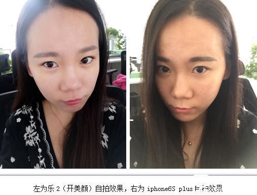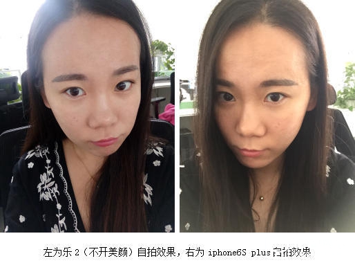 下面,我們再來看看用了美顏功能之后的樂2自拍效果和iphone6S plus的對比,相信這次對比的效果更加明顯,iphone6S plus拍的自拍照如果不下載第三方美顏軟件進行美化的話實在無法和樂2相提并論。