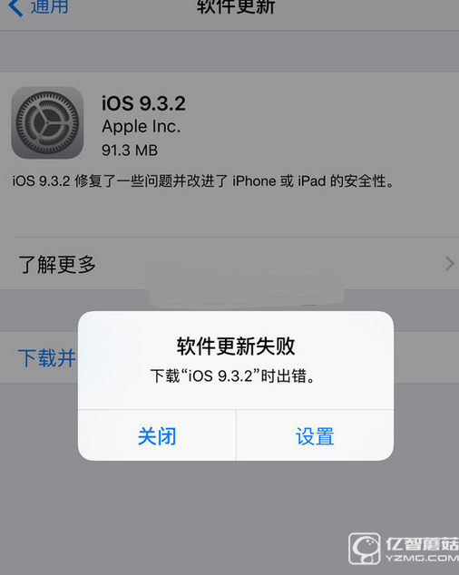 ios9.3.2提示更新失敗錯誤怎么回事 蘋果ios9.3.2無法更新解決方法