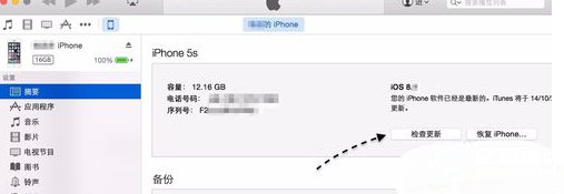 接下來在 iPhone 的摘要管理界面里,請點擊【檢查更新】按鈕,就會檢測到最新的iOS9.3.2系統了。