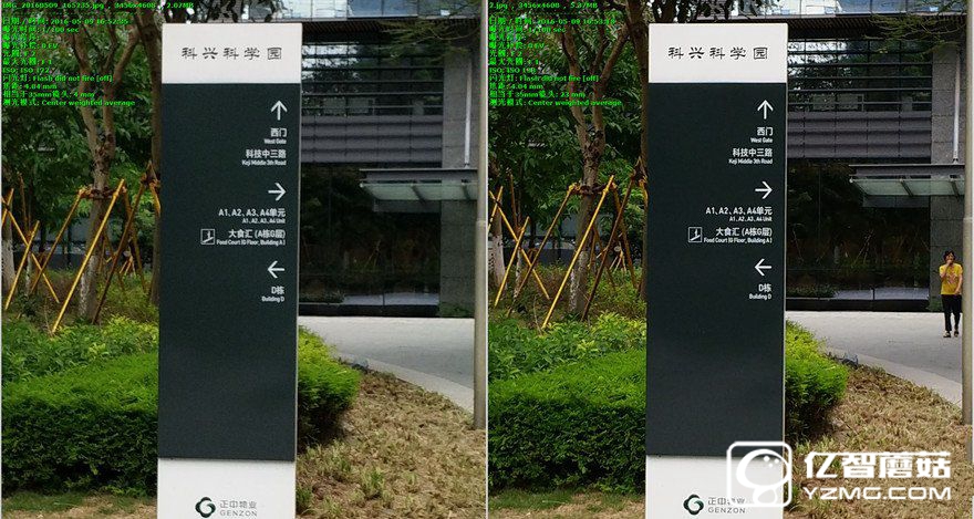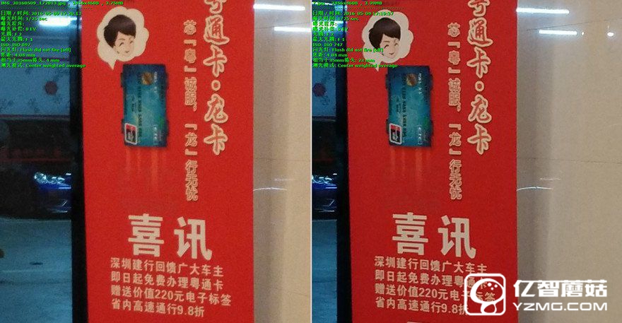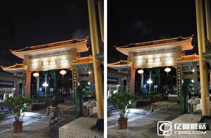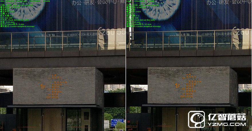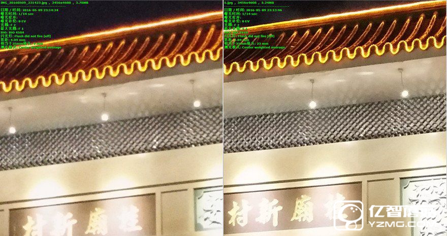 在弱光場景,我們可以發現兩者樣張的ISO、快門都非常接近,但旗艦版樣張的數據量總是大一些,反映在樣張上的是更好的噪點涂抹和銳度表現,畫面純凈度更高,彩噪更少。
