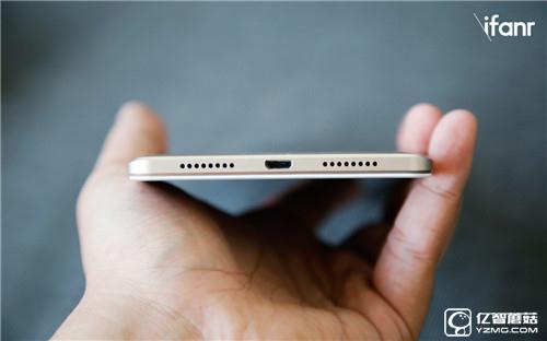 機身底部是傳統(tǒng)的MicroUSB接口,而沒有使用USBType3,底部揚聲器與麥克風排列對稱。