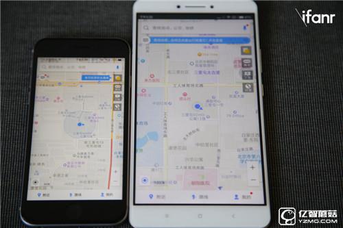 同樣的高德地圖,小米Max能顯示的區(qū)域比旁邊的iPhone6s多出不少。把小米Max當做車載導航儀使用,是個很好的選擇。同時,MIUI中內(nèi)置的“巨無霸”字體,能夠使得小米Max的顯示內(nèi)容,看上去更大,適合老人使用點按。