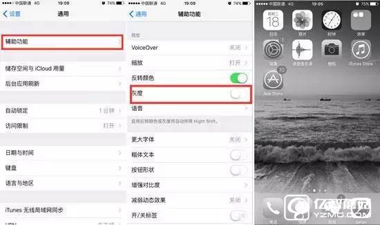 設(shè)置方法:在設(shè)置中,找到通用,點(diǎn)擊“輔助功能”,將“灰度”功能開(kāi)啟即可。