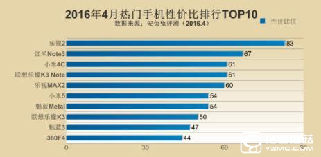 看完這張圖是否你有了答案?沒錯了,4月20日發布的樂視新品手機——樂2,在發布沒幾天便以超高的性價比拿下了4月性價比之王的桂冠,并在4月熱門手機性能排行榜上獲得了與魅族高端旗艦PRO 6相當的成績,可謂是真應了Ta的定位——“旗艦殺手”。