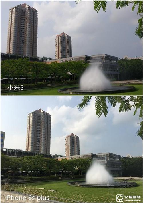 不得不說白天樣張,兩者表現(xiàn)的都非常不錯。如果非要兩者比較下的話,小米5的樣張,通透感稍差,整體亮度也比iPhone6sPlus低,當(dāng)時是晴空萬里,小米5拍出來有點(diǎn)像是陰天,但色彩飽和度方面明顯高于iPhone6sPlus,綠葉顯得非常油綠。