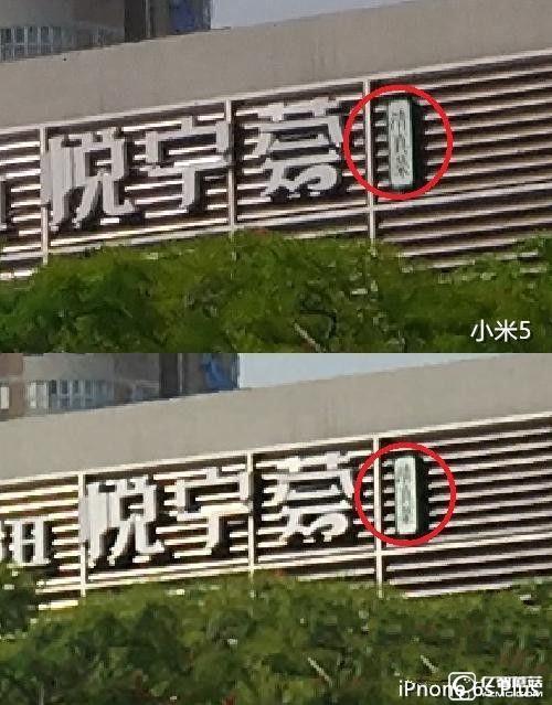 放大看遠(yuǎn)處細(xì)節(jié),小米5的字體還較為清晰,可辨別,而iPhone6sPlus的已經(jīng)糊成一片。高像素的優(yōu)勢就體現(xiàn)出來了~