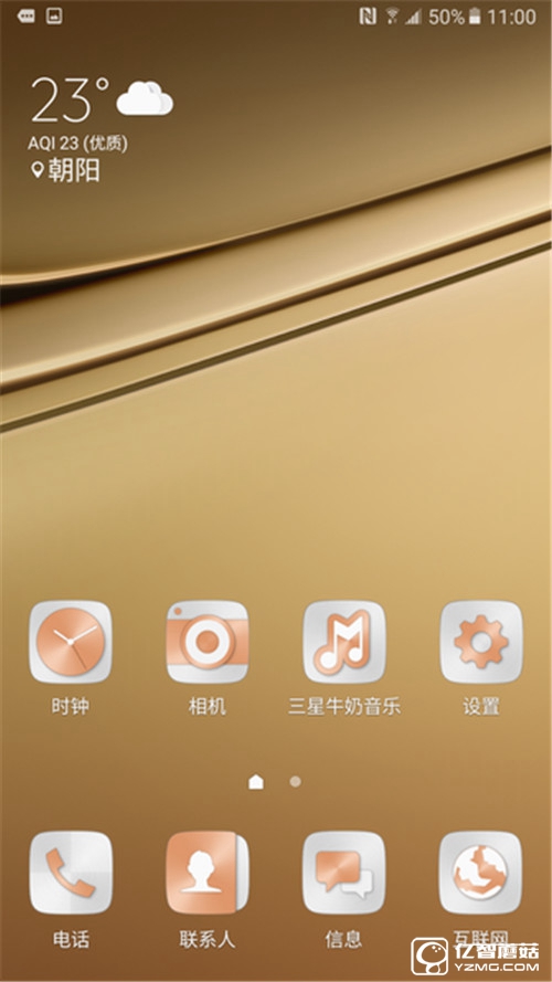 系統方面,三星Galaxy C7采用的是基于Android 6.0.1深度定制的TouchWiz操作系統,不論在鎖屏界面還是在主界面都進行重新設計。進入桌面發現UI配色貼近AMOLED調性,顯得十分濃郁,搭配圓鼓鼓的高亮圖標具有很高的辨識度,這也是三星根據用戶喜好重新繪設的圖標,為了滿足整體性,未來第三方圖標也進行了輕微調試。