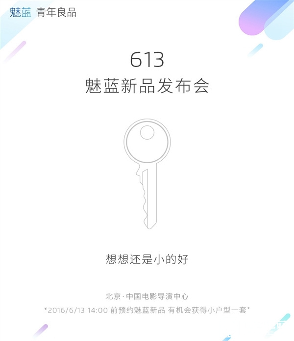就在剛剛,魅族官方公布,6月13日將在北京中國電影導演中心舉辦魅藍新品發布會,同時海報中還給出了“想想還是小的好”的口號。