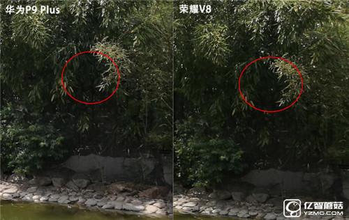 華為P9 Plus和榮耀V8的樣張亮度上沒有明顯差別,把暗部放大后~