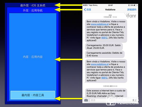 他們當年在推出iPhone5時,曾經(jīng)就多次宣傳自己是一臺可以單手操控的手機,而在iPhone6推出時,更設(shè)計出“Reachability”的功能,讓用戶能透過輕擊Home按鈕,把畫面拉下來按“返回”。而且,在蘋果推出iOS7時,他們加入了新的“屏幕邊緣”手勢來代替“返回”按鈕(下圖)。明顯可見,蘋果也知道用戶恨極這“返回”按鈕。