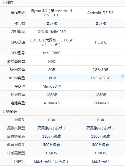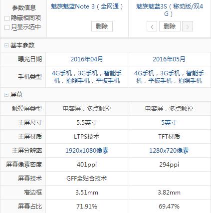 魅藍3S和魅藍note3配置參數詳細對比: