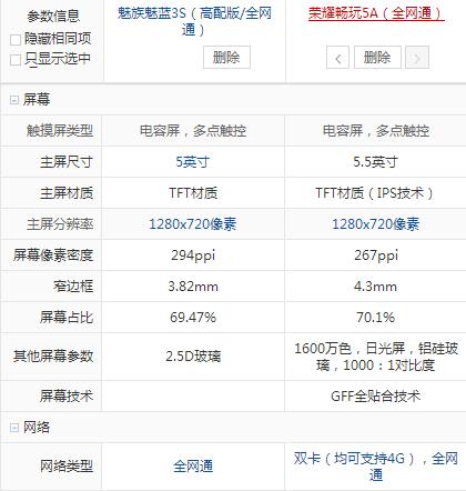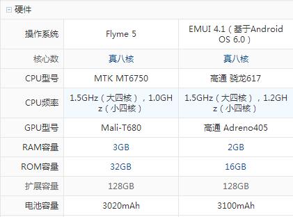 魅藍3s和榮耀5a配置參數(shù)詳細對比: