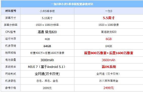 一加手機3和小米5尊享版區別對比評測