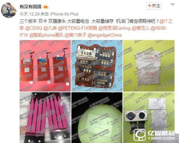 據了解,爆料人@有沒有搞錯自稱是負責iPhone專業維修,曬出了疑似是iPhone 7雙鏡頭、雙SIM卡槽、256GB閃迪存儲卡和Lighting線等零部件的諜照。結合圖片和爆料人自述來看,iPhone 7應該還會有耳機孔,支持雙卡,新增Pro版,最高有256GB版存儲空間,Plus和Pro版本會配備雙鏡頭,電池容量也有升級,變動相當不小。