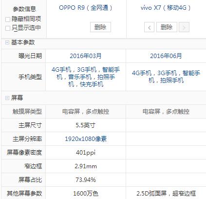vivo X7和OPPO R9配置參數詳細對比: