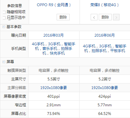 榮耀8和OPPO R9配置參數(shù)詳細(xì)對(duì)比: