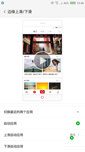 全新FiT 2.0交互技術包括單邊滑動、雙邊滑動、內滑、雙擊以及反復滑動,單邊滑動可以實現切換最近的兩個應用或者啟動應用(需提前設置好);雙邊滑動則是調節屏幕亮度,在觀看視頻、玩游戲時,可以快速調整屏幕亮度;雙擊屏幕則為返回上一層界面,單邊反復滑動清理后臺。