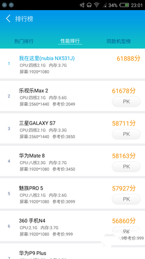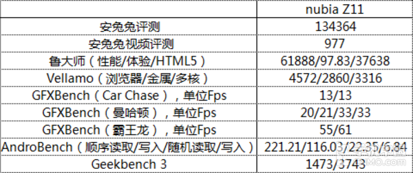 得益于驍龍820內置驍龍X12 LTE調制解調器,實現全網通3.0,支持4G+、雙卡雙待盲插、VoLTE技術,同時當主卡使用移動、聯通4G網絡時候,副卡突破性支持聯通3G網絡語音通話,大大提高通話信號質量。下面我們看看nubia Z11在各大跑分軟件的表現: