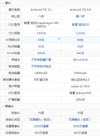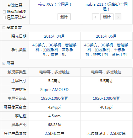 努比亞 Z11和vivo X6S配置參數詳細對比: