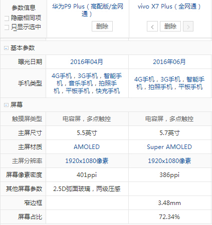 vivo x7 Plus和華為 P9 Plus配置參數(shù)詳細(xì)對比: