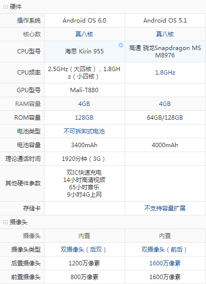 處理器采用海思麒麟955處理器,4GB運(yùn)存+64GB存儲,只有這一個存儲組合版本,支持?jǐn)U展。