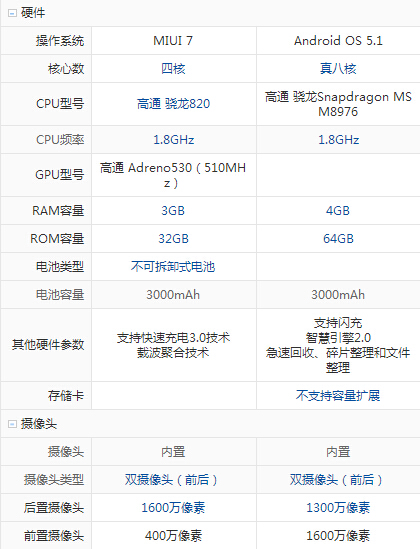 小米5和vivo X7配置參數(shù)詳細(xì)對(duì)比: