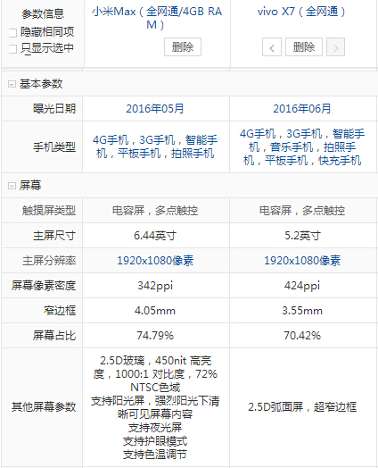 小米Max和vivo X7配置參數(shù)區(qū)別對比評測
