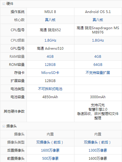 小米Max采用驍龍650/652處理器,搭配了4GB RAM+128GB ROM。在拍照方面,小米Max采用了1600萬像素攝像頭,支持光學(xué)防抖和相位對焦。