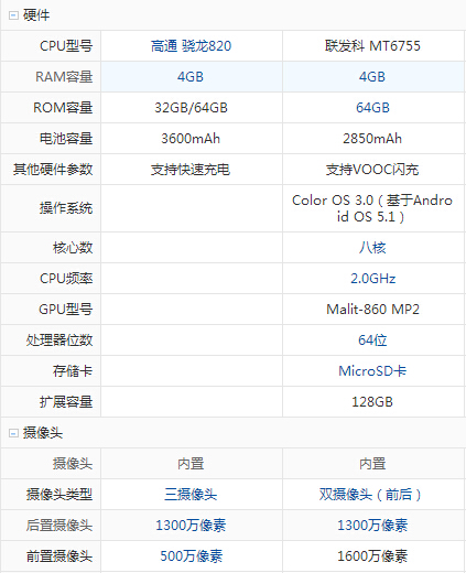 配置方面:OPPO R9采用聯發科Helio P10處理器,5.5英寸1080p屏幕,配備4GB RAM和64GB ROM存儲組合,1600萬像素的前置攝像頭和1300萬像素的后置攝像頭,雙卡雙待全網通,正面指紋識別,電池容量為2850mAh。