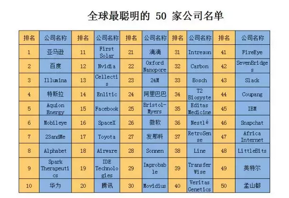 全球最聰明的50家公司:華為第十 蘋果落榜