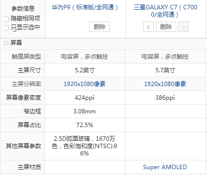 三星 C7和華為P9配置參數(shù)詳細(xì)對(duì)比: