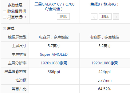 三星 C7和榮耀8配置參數(shù)詳細(xì)對(duì)比: