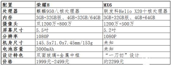 魅族MX6和榮耀8區別對比評測 哪款性價比更高?
