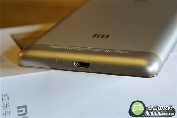 機(jī)身底部擁有Micro USB插口,旁邊的小口是麥克風(fēng),用戶通話都靠它來收聲。