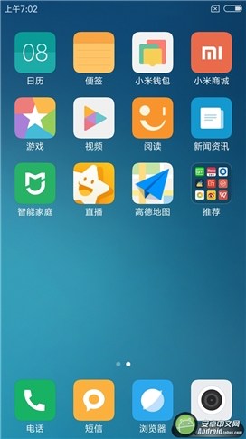 相比之前,MIUI 8的系統應用圖標依舊采用了圓角矩形,但在例如安全中心、瀏覽器等的一些圖形上進行了改進,整體更為協調與直觀。此外,在主界面點按菜單鍵后,不僅可以對正在運行的應用進行一鍵清理操作,更可直接打開音樂播放器,整個系統的娛樂性相比之前也有所提升。