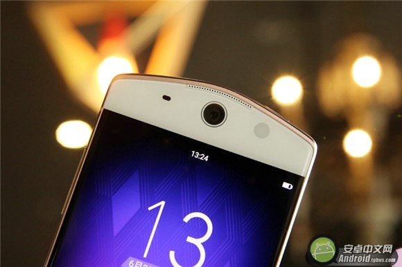 機(jī)身正面光線傳感器、攝像頭、和閃光燈一字排列。由于M6采用的是前置白色玻璃面板,所以光線傳感器和閃光燈比較明顯。