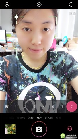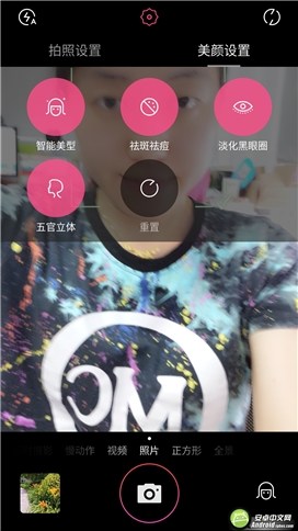 在自拍界面上,美圖M6擁有拍照設置/美顏設置兩個選項,用戶可以在拍照前進行選擇,同時在拍好照片后進行美顏,祛祛痘、祛祛斑、淡化個黑眼圈什么的都不在話下,總之,就可以把自己變得美美噠~