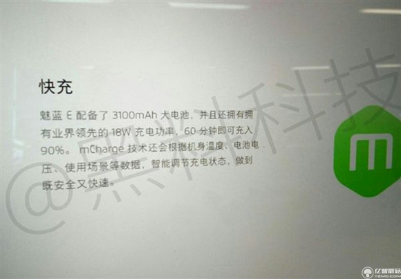 今日,有微博網友曝光了一張魅藍E的快充功能截圖,據了解,魅族魅藍E配備了3100mAh大電池,并擁有18W充電功率,60分鐘即可充入90%。