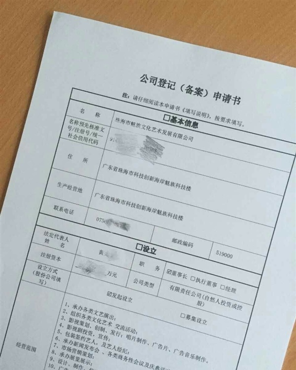 而今日,有魅族內部員工爆料,魅族正在籌備申請注冊“珠海市魅族文化藝術發展有限公司”,地址在珠海魅族科技樓,主業為承辦各類藝術演出、交流活動、影視投資、唱片制作等。