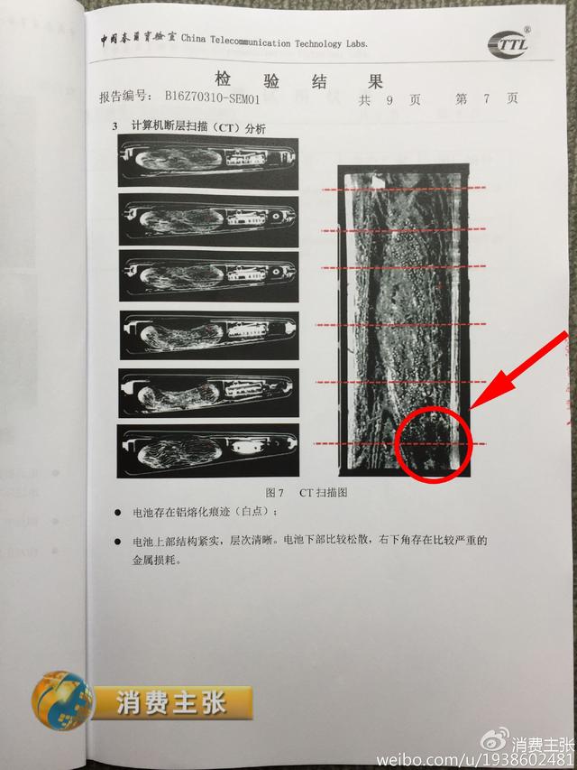 跟上次送檢方是三星公司不同,這次是回先生、張思童委托“中央電視臺《消費主張》欄目”進行送檢,雖然是同一家檢測機構(gòu),依據(jù)的還是同上次一樣的檢測方法——X射線成像及計算機斷層掃描、對電池進行內(nèi)部結(jié)構(gòu)分析等,但是得出的結(jié)論卻和上次完全相反!
