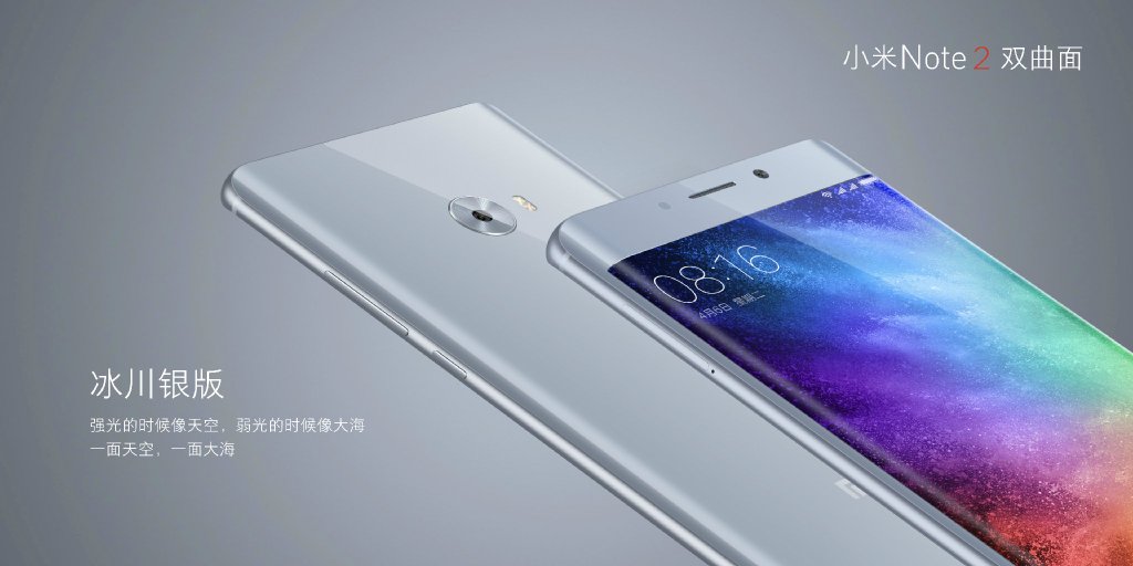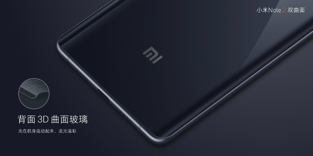 雷軍介紹稱,小米Note2采用“正面+背面3D曲面玻璃”對稱式設計,配以經(jīng)過磨砂處理的7系鋁金屬邊框,機身正反兩面可圓潤過渡到側(cè)面。在機身配色方面,小米Note2提供亮黑、冰川銀雙色選擇。