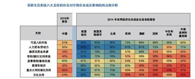 世界經濟論壇中國理事會近日發布的《中國創新生態系統》報告提到,目前,中國各類眾創空間已超過2300家,科技企業孵化器、加速器超過2500家。2014年,中國還開創性地在北京、上海、廣州設立了知識產權法院。此外,政府對創新的支持也十分重要。中國政府認識到創