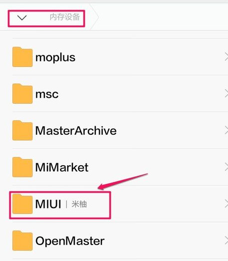 手機中我們這里可以切換為內存設備,默認是內存設備,然后找到MIUI進入。