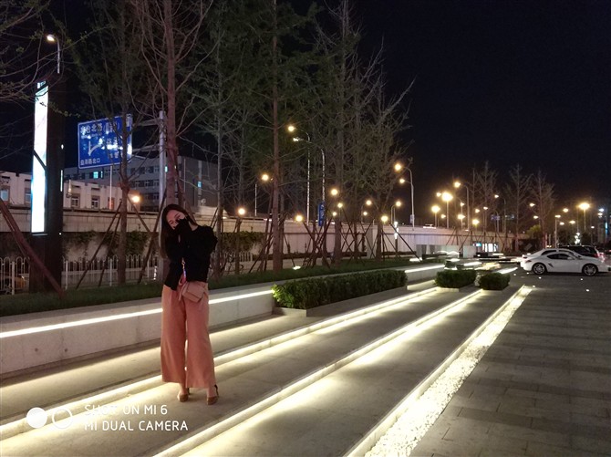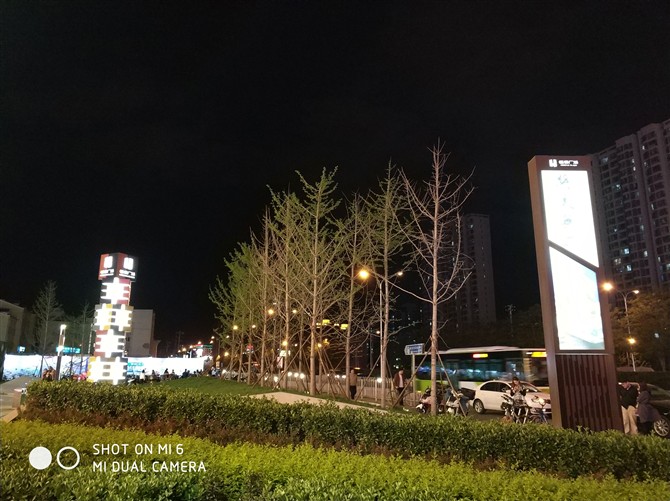 在夜間弱光的情況下,小米6的表現也比較不錯。雖然夜間情況下選擇不同的測光點,其明暗程度也不盡相同,不過在平均測光的情況下,小米6也能還原景物的色彩。