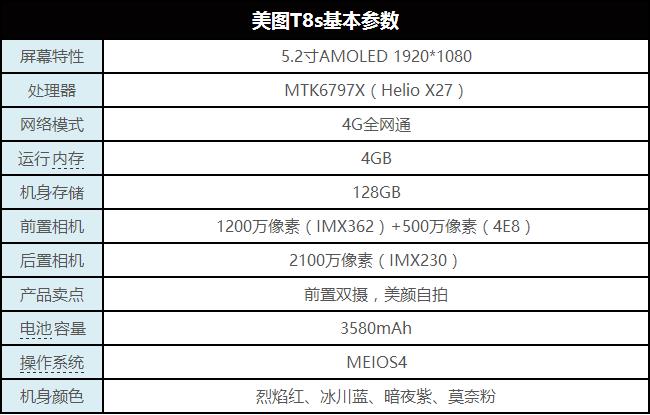 先來(lái)看一下美圖T8s的具體硬件參數(shù)。