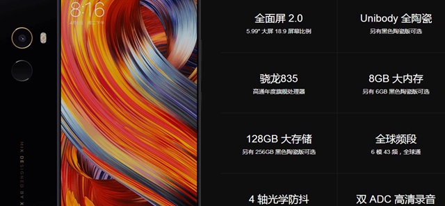 小米MIX2詳細規格配置 單攝像頭設計9月15日正式開賣