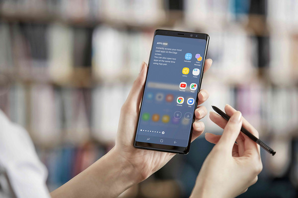 Galaxy Note8采用6.3英寸的全視曲面屏,具有超窄邊框、沉浸感視效、雙曲面側屏的特性。三星減小顯示屏四個圓角的半徑,長寬比依舊是18.5:9,分辨率為2960×1440。