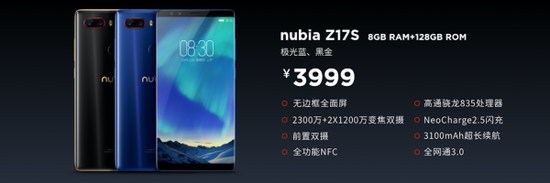 努比亞Z17S正式發(fā)布:全面屏2.1+2999元起!