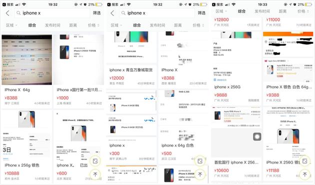 從搶購前“iPhone X 轉手賺幾千 ”到搶購后“iPhone X 加價 500 收”,這批希望靠著 iPhone X 大撈一筆的人,心理歷程仿佛體驗了一次跳樓機。在閑魚上,有的人搶到了第一批 iPhone X 只希望賺點安慰費,有的人只加價 100~ 300 元,但其余大部分賣家加價范圍在 500 ~ 2000 之前,其中加價 500 元的居多。