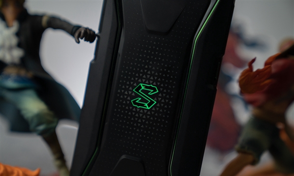 背面設計感十足,采用對稱式跑車ID設計,背部黑鯊Logo內置了LED呼吸燈。手機左側有一個單獨的Shark Space按鍵,撥動后可進入高性能游戲模式,手機會將內存清理到最佳的狀態,界面上只會顯示游戲。